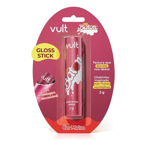 Vult & Baton Gloss Stick Malva Frutas Vermelhas 2g Vult & Baton se unem na collab que traz uma experiência sensorial irresistível, resgatando a nostalgia do chocolate mais amado em um produto inovador: o Gloss Stick. A cremosidade dos seus sonhos agora em Gloss Batom com tons icônicos, numa fusão de brilho, cor e cuidado para os seus lábios. O Gloss Sólido Vult & Baton Malva combina a experiência do cheirinho inspirado nas frutas vermelhas com uma performance incrível. Descasque a embalagem, sinta o aroma e passe nos lábios: -Textura que derrete nos lábios -Brilho espelhado com um acabamento lustroso -Hidrata os lábios -Fórmula leve que constrói camadas -Oferece sensação de lábios hidratados imediatamente e os deixa mais suaves -Vegano, sem parabenos e Talc free. Este Gloss Sólido Vult & Baton entrega alto brilho, cor e tratamento, mantendo os lábios com aparência saudável e hidratação.