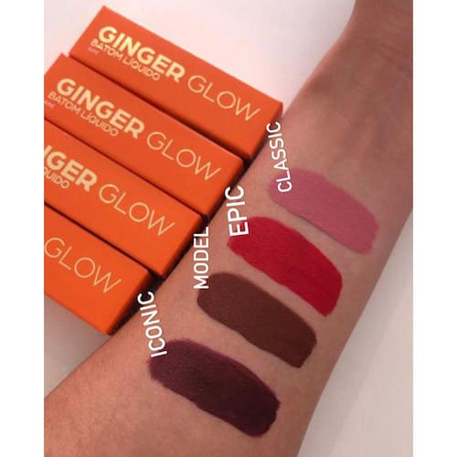 Batom líquido Ginger Glow Uma embalagem sofisticada e prática o batom líquido Ginger Glow Mari Maria makeup possui cores intensas, textura aveludada e alta pigmentação. Sua fórmula hipoalergênica é leve e proporciona um acabamento matte que dura o dia todo, sem tirar o conforto dos lábios e sem transferir. Possui um aplicador moderno que facilita o contorno da boca e promove um acabamento mais preciso.