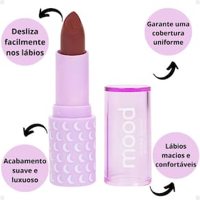 Aplique o batom diretamente nos lábios, começando pelo centro e espalhando para as bordas. Para um resultado mais intenso, aplique uma segunda camada.