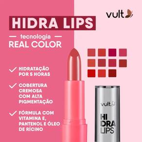 Vult Hidra Lips Rose Gold Batom cremoso Vult Hidra Lips possui textura cremosa e confortável que proporciona alta pigmentação e hidratação por 5 horas. O Batom Cremoso Vult Hidra Lips apresenta fórmul