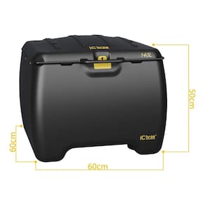 Estrutura reforçada: baú produzido em material plástico de alta resistência, adequado ao uso frequente.