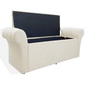 Báu Calçadeira Cancun 140cm Suede Marfim - Vallisa Decor
