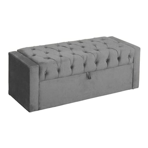 Báu Calçadeira Emma 195cm Suede Cinza - Vallisa Decor