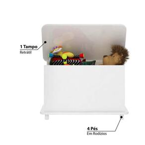 Características - Cor: Branco. - Estrutura: MDP. - Acabamento: Revestimento Finish Foil. - 1 Tampo retrátil. - 4 Rodízios, sendo 2 com travas. - Bordas arredondadas em perfil de PVC. - Móvel entregue desmontado.