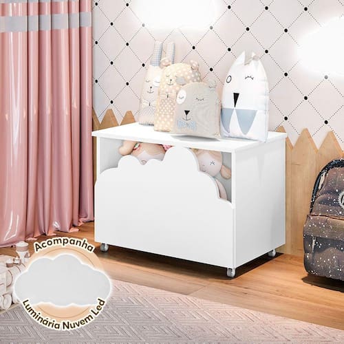 Baú De Brinquedos Alegria - BrancaBaú possui design vazado em formato de nuvem perfeito para organizar brinquedos e fazer parte da decoração com sua delicadeza. Feito em material MDF com tampo com dobradiças metálicas, também acompanha rodízios para locomoção.Tipo: Báu OrganizadorModelo: AlegriaCor: Branco Garantia: 90 diasProduto DesmontadoEstrutura em MDFPintura UV Verniz BrilhoMedidas:Altura: 44cmLargura: 61cmComprimento: 38cmATENÇÃOIMAGENS MERAMENTE ILUSTRATIVAS REALIZADO EDIÇÃO, PODENDO HAVER UMA PEQUENA VARIAÇÃO DE COR DEPENDENDO DE CADA TELA OU MONITOR.