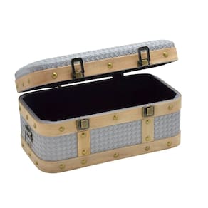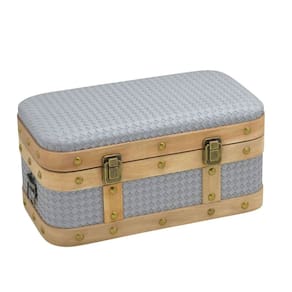 Baú Decorativo em MDF e Couro Sintético Cinza 40cm