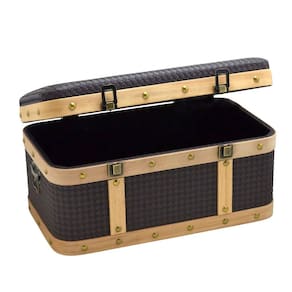 Baú Decorativo em MDF e Couro Sintético Preto 50cm