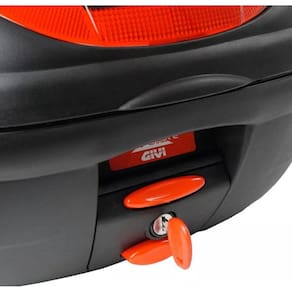 Baú Givi Monolock Flow com capacidade para até 35 litros. Desenvolvido em design compacto e moderno, além de possuir trava altamente segura por meio de chaves, que acompanham o produto, possui um grande refletor, aumentando a visibilidade da motocicleta. A aplicação é feita sob o bagageiro utilizando a base de instalação, que acompanha o baú, garantindo seu encaixe seguro.