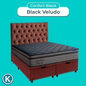Baú Marrom + Cabeceira + Colchão King Confort Black Ortobom Conjunto King Colchão Confort Black + Cama Box Bau Marrom + Cabeceira O Colchão Confort Black Ortobom une tecnologia e conforto para um sono de qualidade. Conta com pillow top em espuma D28 selada, que garante maciez, resiliência e durabilidade. Sua estrutura interna em EPS de alta resistência oferece suporte firme e estável, mantendo a ergonomia ideal.