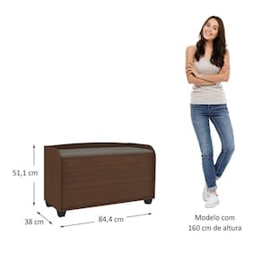 Seu espaço interno permite armazenar objetos como roupas de cama, cobertas, travesseiros, brinquedos, calçados e outros itens conforme a necessidade. O tampo estofado traz mais conforto e agrega funcionalidade ao produto, permitindo que ele também seja utilizado como assento de apoio no ambiente.