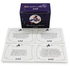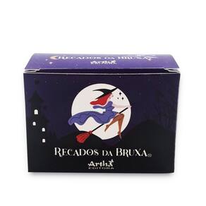 Este Baú traz 64 Recados de uma Bruxa Milagrosa, que responderá às suas perguntas de forma direta e objetiva. Formato da caixa: 74 x 52 mm Caixa colorida cartão triplex – 4 Cores 64 mensagens – cartão triplex – 1 cor Formato cartão mensagem: 70 x 50 mm