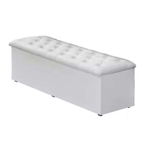 Lindo Baú Recamier King 47x193x51 em Corino Branco. Ideal para quem busca modernidade para o quarto e espaço para guardar cobertores, roupas de cama, travesseiros, entre outros.
