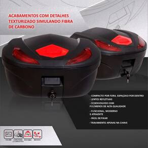 Indicado para motociclistas que procuram: espaço amplo sem comprometer a estética da moto. um baú resistente e seguro para transportar capacetes e outros objetos. um design moderno e funcional. Marca: Não Informado