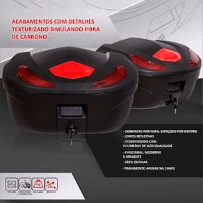 Indicado para motociclistas que procuram: espaço amplo sem comprometer a estética da moto. um baú resistente e seguro para transportar capacetes e outros objetos. um design moderno e funcional. Marca: Não Informado