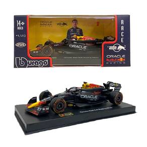 Este é um modelo em escala do carro de Fórmula 1 da Oracle Red Bull Racing RB20, pilotado por Max Verstappen. Ele é produzido pela marca Bburago na escala 1/43 e é feito de metal fundido (die-cast). O modelo apresenta a pintura e os adesivos oficiais da temporada, incluindo os logotipos da Oracle, Red Bull, Bybit e Honda. A embalagem também mostra a imagem de Max Verstappen.