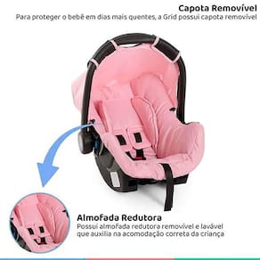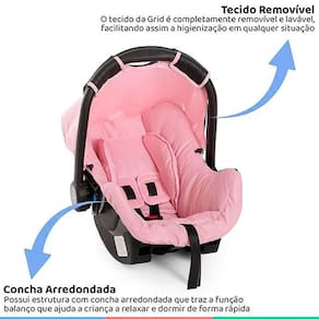 O bebe conforto Grid e o mais novo lancamento da Galzerano, proporcionando um excelente custo beneficio para a melhor solucao de transportes dos bebes recem-nascidos. Atendendo os bebes recem-nacidos do grupo 0+ ate que atinjam 13kg, voce ainda tera um bebe conforto que e acoplavel com facilidade nos carrinhos, alem de contar com diversas caracteristicas que a deixam ainda mais atrativa, como capota removivel e lavavel que protege o bebe contra os raios de sol, almofada redutora removivel e lavavel que auxilia na acomodacao correta da crianca, para garantir a seguranca o bebe conforto possui cinto de 3 pontos com ajuste de altura e protetores de ombro trazendo conforto para o bebe. Seu tecido e completamente removivel facilitando assim a lavagem em qualquer situacao, ainda possui alca de transporte facilitando assim o manuseio e impedindo que acorde o bebe enquanto ele dorme. Caracteristicas tecnicas: Cinto de seguranca de 3 pontos com indicador de travamento; Tecido removivel e lavavel; Protetor de ombro e de fecho removivel e lavavel; Redutor; Pratica para o transporte do bebe; Base de acoplamento do bebe conforto para automoveis ref.8185 - vendida separadamente; Embalagem individual e compacta; Facil instalacao; Pratica e confortavel para o dia a dia; O melhor custo beneficio; Acopla nos carrinhos com facilidade; Produto Certificado NBR 14400; Registro do produto no INMETRO - N 002126/2022. Cinto de seguranca de 3 pontos com indicador de travamento; Peso Suportado: 13 kg