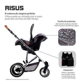 • Pode ser acoplado nos carrinhos 3TEC, SALSA 3, SALSA 4, CONDOR 4, MINT, AVITO, COMO4 e ZOOM com a utilização de adaptadores (VENDIDO SEPARADAMENTE)