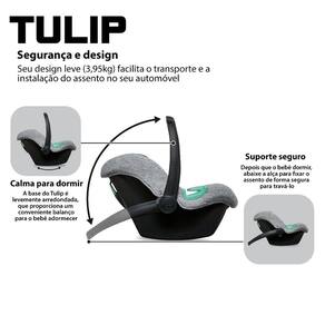 A Base do Bebê Conforto TULIP é levemente arredondada que proporciona um conveniente balanço para o bebê adormecer e pode ser travado quando abaixada a alça de transporte.