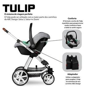 Pode ser acoplado aos modelos de carrinhos: SALSA 3, SALSA 4 e ZOOM com a utilização do adaptador vendido separadamente, transformando seu carrinho em um Travel System.