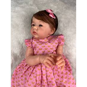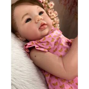 Nossos bebês são confeccionados com o mais alto padrão de qualidade em vinil siliconado. Os olhos azuis brilhantes garantem uma aparência encantadora e realista.