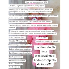 1 Sacola especial para presente (Não se preocupe em comprar embalagem de presente, pois enviamos junto com a bebê uma linda sacola de presente personalizada, que tornará ainda mais especial o momento de presentear a sua princesa)