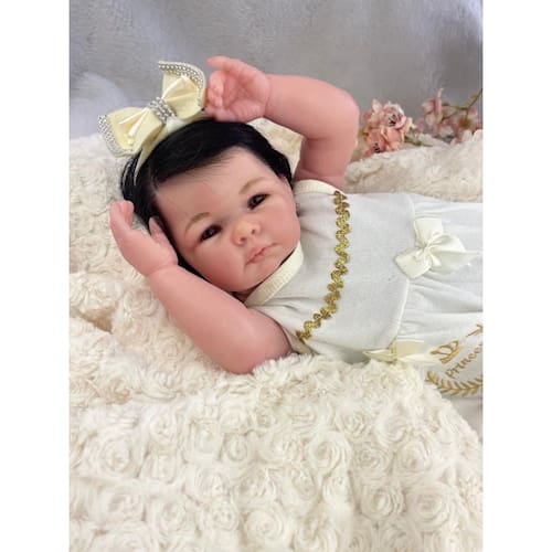 Bem-vindo(a) à nossa loja! É um prazer ter você aqui!Nossa equipe é apaixonada por oferecer brinquedos de qualidade, com carinho, segurança e realismo. Tudo para tornar cada momento com nossos bebês reborn ainda mais especial!\nBrincar com boneca é mais do que diversão! Brincar de cuidar desenvolve a empatia, a imaginação e fortalece a autoestima das crianças.E agora, com a nossa boneca que faz xixi de verdade, a experiência fica ainda mais realista! Presenteie com carinho, presenteie com amor.\nNOVIDADE! SUA BONECA REBORN QUE FAZ XIXI — ARTESANAL, REALISTA E INTERATIVA! Sim! Esta bebê reborn faz xixi de verdade!Basta dar a mamadeira com o leite de brincadeira, e em alguns minutinhos ela vai fazer xixi, como um bebê de verdade!Uma experiência completa de cuidado e afeto!\nCaracterísticas do Produto:\nCorpo e membros: Vinil siliconado (toque suave e natural)\nOlhos: Castanhos profundos\nPeso: Aproximadamente 1,8 kg\nTamanho: 48 cm\nCabelinho: Implantado com fibra beautex de alta qualidade na cor preto.\nFunção extra: Faz xixi de verdade após tomar a mamadeira\nPintura: Técnicas reborn exclusivas\nO que acompanha a boneca? (Roupinhas podem variar de acordo com o estoque)\n1 Body\n1 Calça 1 Laço 1 Manta 1 Pano de boca 1 Par de luvinhas 1 Par de sapatinhos\n2 Fraldas\n1 Par de brincos\n1 Chupeta \n1 Mamadeira\n1 Receitinha de leite falso\n1 Certidão de nascimento\n1 Teste do pezinho\n1 Manual de cuidados\n1 Carteirinha de vacinação\n1 Ultrassom do bebê\n1 Passaporte\n1 Certificado de autenticidade\nTudo é cuidadosamente embalado para garantir que seu bebê chegue em segurança e com muito amor. Itens exibidos nas fotos mas não listados acima são meramente ilustrativos.\nUm toque de realidade em cada detalhe:\nVinil siliconado de alta qualidade\nPeso e medida semelhantes aos de um recém-nascido\nOlhos brilhantes e expressivos\nTécnica reborn com pintura detalhada\nE agora: faz xixi como um bebê de verdade!\nPerguntas Frequentes Ela pode tomar banho?Sim! Ela faz xixi de verdade?Sim! Basta alimentá-la com a mamadeira e aguardar — ela fará xixi, como um bebê real. Tem ?Sim! Enviamos imediatamente após a confirmação da compra. Qual o tamanho da roupinha?Tamanho RN ou P.\nAdote já sua bebê reborn que faz xixi! Proporcione momentos mágicos, educativos e inesquecíveis.Ideal para presentear com carinho e estimular o cuidado desde cedo.   Dúvidas? Fale com a gente! Será um prazer te atender.