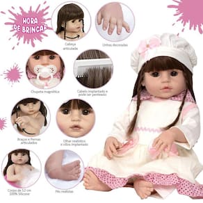 Tags: Boneca, Bebe, Reborn, Realista, Menina, Infantil, Silicone, Princesa, Linda, Morena, Loira, Fofa, Banho, Enxoval, Completo, Grande, Baby Alive.