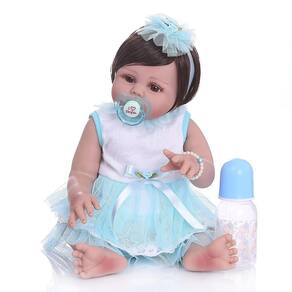 1 Boneca de 47cm 1 Jogo de Roupas (idem as fotos) 1 Chupeta magnética para bonecas reborn 1 Ursinho de Pelúcia 1 Tiara de Cabelo 1 Mamadeira 1 Brinde extra (Certificado de nascimento)* Produto não recomendado para crianças com menos de 3 anos de idade.
