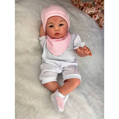 Toque de Realidade: Nossos bebês são confeccionados com o mais alto padrão de qualidade em vinil siliconado e tecido macio. Os olhos azuis brilhantes garantem uma aparência encantadora e realista. Peso de 1,8 kg e medida de 48 cm – como um bebê de verdade!Ao segurá-la, você sentirá o peso reconfortante de um recém-nascido, tornando cada momento de interação uma experiência genuína. Cada detalhe da técnica reborn transforma a boneca em uma obra de arte apaixonante!