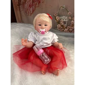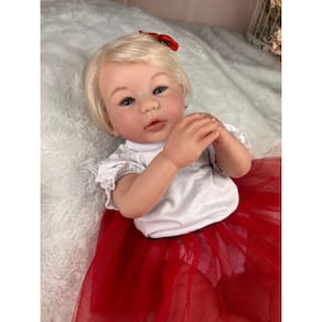 Nossos bebês são confeccionados com o mais alto padrão de qualidade em vinil siliconado. Os olhos azuis brilhantes garantem uma aparência encantadora e realista.