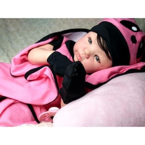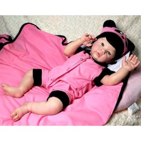 Bebe Reborn Menina Realista Com Enxoval de PandinhaPRONTA ENTREGACorpo em Vinil Silicone totalmente articulado e de excelente qualidade,Ele pode sentar, deitar, levantar os bracinhos e fazer tudo o que a sua imaginação mandar, menos tomar banho hein...Acompanha enxoval igual ao da foto. Toda a roupinha, chupetas e acessórios são de muito bom gosto e de primeira qualidade. Cílios de verdade,Corpo: tecido macio (suede)Olhos: azuisCabelo: implantado fio a fioPeso: 1 kg e 800 gramas aproximadoMedida:48 cmPintura: aplicada toda a técnica reborn, manchinhas arroxeadas, manchinhas de frio, veinhas aparentes, unhas francesinha, marquinha de vacina e marquinha do teste do pezinhoO QUE ACOMPANHA A BEBÊ1 Roupa (pode ir diferente da foto porém da mesma qualidade)1 Manta1 Par De Luvas2 Fraldas1 Pente1 Escova1 Prendedor de chupeta1 Chupeta magnética1 Mamadeira com leite falso1 Certidão de nascimento1 Teste do pezinho1 Manual de cuidados1 Teste do ultrassom1 Carteirinha de vacina1 Passaport1 Certificado de autenticidade1 Lindo embrulho.1 Caixa para proteger o bebê Tire todas as suas dúvidas antes da compra.Estou sempre à disposição para atendê-los. Para alteração da cor dos olhos e cabelos pedimos a gentileza dos clientes para entrar em contato após a compra pelo campo de mensagens.