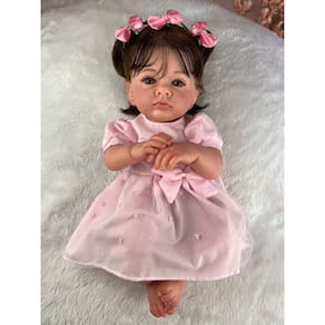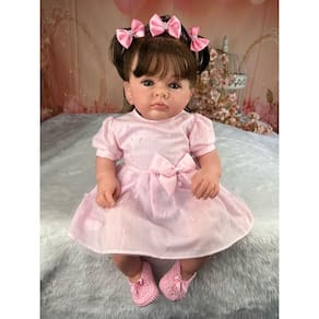 Nossos bebês são confeccionados com o mais alto padrão de qualidade em vinil siliconado e tecido macio. Os olhos castanhos brilhantes garantem uma aparência encantadora e realista.