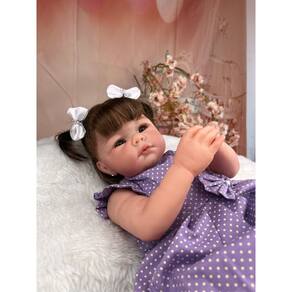 Toque de Realidade: Nossos bebês são confeccionados com o mais alto padrão de qualidade em vinil siliconado. Os olhos castanhos brilhantes garantem uma aparência encantadora e realista. Peso de 1,8 kg e medida de 48 cm – como um bebê de verdade!Ao segurá-la, você sentirá o peso reconfortante de um recém-nascido, tornando cada momento de interação uma experiência genuína. Cada detalhe da técnica reborn transforma a boneca em uma obra de arte apaixonante!