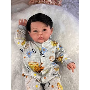 Nossos bebês são confeccionados com o mais alto padrão de qualidade em vinil siliconado. Os olhos castanhos brilhantes garantem uma aparência encantadora e realista.
