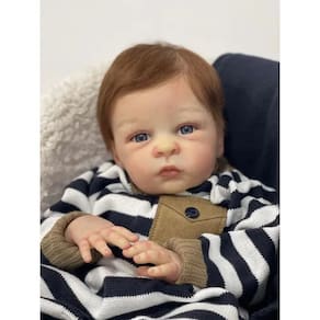 BEBÊ REBORN MENINO FEITO A MÃO – PREMIUM Dos brinquedos que fazem parte da infância, boneca com certeza está na lista, imagina que legal ter um bebê reborn Ana Dolls? Características: Olhos azuis ultra realista Cabelinho implantado fio a fio feito a mão em mohair premium Corpinho em tecido suede macio Tamanho 49 cm Peso 2kg aproximadamente. Pintura: técnica avançada, toda realizada com tintas e vernizes exclusivos para Arte Reborn. Detalhes: textura de pele, unhas, veias, micro veias, pontos úmidos e lábio ultra-realista.