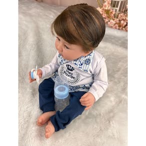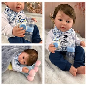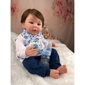 Nossos bebês são confeccionados com o mais alto padrão de qualidade em vinil siliconado. Os olhos azuis brilhantes garantem uma aparência encantadora e realista.