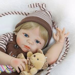 Estrutura: Todo o corpo é feito de Vinil 100% Silicone super macio; ela pode sentarse ou deitar, não pode falar, não come, olhos azul abertos, pode dar banho, movimenta braços e pernas, olhos não piscam;