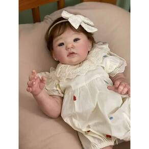 Corpo: Em tecido suede muito macio. Olhos: azuis com cílios realista Cabelo fio a fio monhair premium Peso: Aproximadamente 2 kg Membros vinil silicone Pintura: Aplicada toda a técnica Reborn, pintura 3D manchinhas arroxeadas, manchinhas de frio, veias aparentes, unhas francesinhas, marquinha de vacina e marquinha do teste do pezinho.