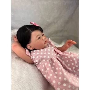 Nossos bebês são confeccionados com o mais alto padrão de qualidade em vinil siliconado. Os olhos azuis brilhantes garantem uma aparência encantadora e realista.