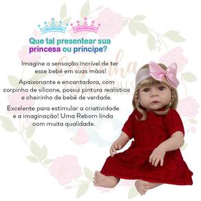 Conteúdo: 1 Bebê Reborn Cabeça, Membros e Corpo de Vinil 1 Vestido 1 Par de Cílios 1 Par de Brincos 1 Chupeta 1 Mamadeira Simples 5 Certificados 3 Fraldas 1 Laço Cetim 2 Presilhinha 1 Par de Luvas 1 Bolsa Maternidade 1 Prendedor de Chupeta Kit Pente e Escova Simples