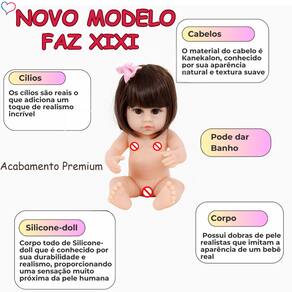 Nós da Sweetie Reborn Brasil ® apresentamos a nossa adorável Boneca Bebê Reborn, agora com a incrível funcionalidade de fazer xixi! Confeccionada em vinil com acabamento de Silicone-doll, proporciona um toque único e sem cheiro. Ela possui 38 cm e 670 gramas, sendo perfeita para crianças a partir de 3 anos. Totalmente segura e certificada pelo INMETRO 002 552/2022, 100% aprovada nos ensaios físicos/mecânicos, químicos e livre de Ftalato!