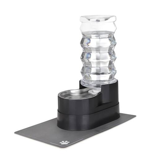 - ?Fácil de usar? O exterior transparente deste bebedouro para animais de estimação garante que você possa monitorar facilmente o nível de água no bebedouro e reabastecê-lo em caso de falta de água iminente. O reabastecimento é tão fácil quanto retirar o balde do dispensador de água, enchê-lo com água e colocá-lo na base.