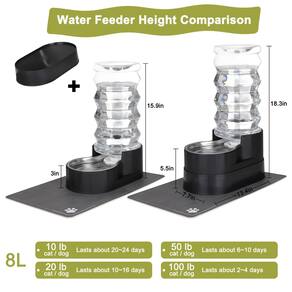 - ?Grande capacidade? O dispensador de água funciona para cães e gatos de pequeno a grande porte, ele lentamente recarrega água para garrafa por gravidade e prolonga o tempo de recarga, com capacidade de 8 litros, o suprimento diário de água do gatinho seria sustentado, ótimo para donos de animais de estimação viajando ou ocupados no trabalho, você não precisa se preocupar com a falta de água do seu animal de estimação.