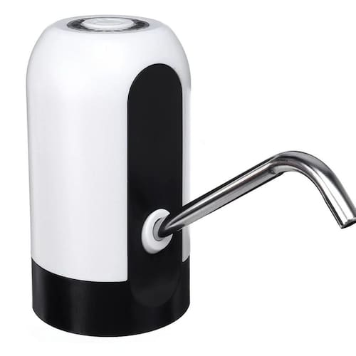Bomba elétrica para galão de água com recarga via USB. Compatível com galões de 5L, 10L, 20L e similares. Possui haste em aço inox e mangueira de silicone. Pode ser utilizada durante o carregamento.Água gelada