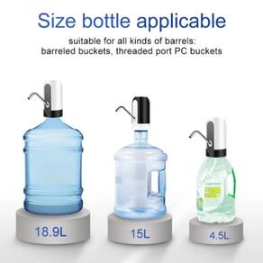 Bomba elétrica recarregável para galão de água, compatível com galões de 5L, 10L, 20L. Bateria de longa duração com autonomia de 45 a 60 dias. Carregamento rápido em 3 horas. Pode ser utilizada enquanto carrega. Compacta e portátil. Instalação simples e segura.Água gelada