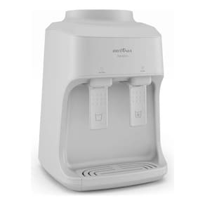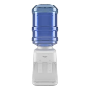 Bebedouro com sistema de refrigeração eletrônico, duas torneiras (uma para água natural e outra para água gelada), compatível com galões de 10L e 20L. Possui bandeja coletora removível e sistema perfurador inteligente.Água gelada