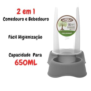 Bebedouro e comedouro: O Flex Gourmet pode ser os dois. Ao ser abastecido com água ou ração, ele garante a alimentação ou hidratação contínua do pet. Basta inverter a posição do reservatório para transformar o Flex Gourmet em comedouro ou bebedouro.
