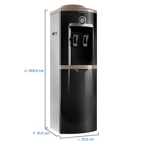 Bebedouro de coluna com sistema de refrigeração por compressor a gás R134A. Controle de temperatura de água gelada entre 5°C e 15°C. Sistema Easy Open Removível para abertura automática do lacre do garrafão. Aparador de água removível. Tamanho do garrafão compatível: 10 e 20 litros.Água gelada