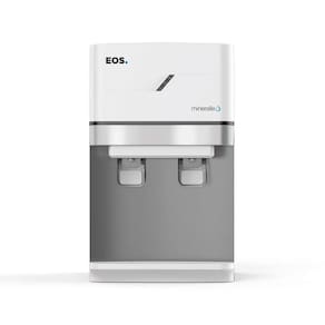 Bebedouro de mesa EOS Mineralle com compressor, suporta galões de 10 e 20 litros, oferece água gelada ou natural, baixo consumo de energia e baixo nível de ruído. Gela até 3,5 litros de água a cada 20 minutos. Possui painel de luz LED e perfurador para lacre.Água gelada