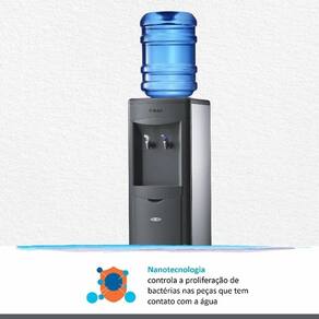 -Especificações Voltagem: 220v Amperagem A : 1,5 / 0,7 Potência: 90 W Frequência: 60 Hz Consumo de Energia: 12,2 kWh/mês Eficiência energética: 0,07 KW/L Acomoda Garrafão: 10 e 20 L Volume Interno do Aparelho: 2 L Capacidade de Fornecimento de Água Gelada: 1,28L/h Temperatura de Resfriamento: 10°C / 50°F Vazão Mínima por Gravidade: 96 L/h Refrigeração: Compressor Termostato Regulável Externo: Sim Uso Residencial: Sim Uso Comercial: Sim A x L x P: 98 x 32 x 33 cm Peso: 12,8 kg
